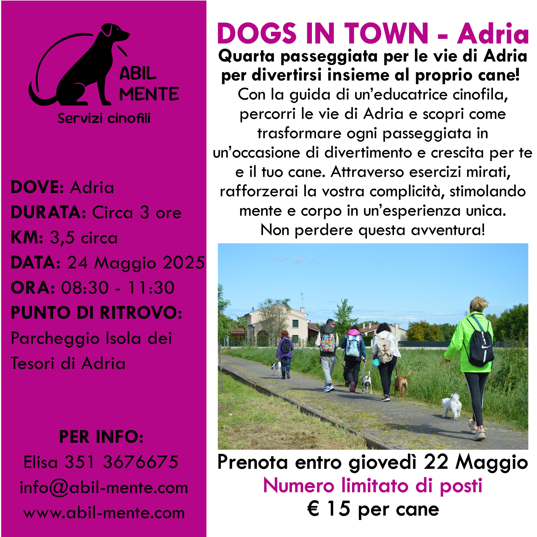 Attenzione! Le iscrizioni per il Dogs in Town della prossima settimana sono APERTE!
